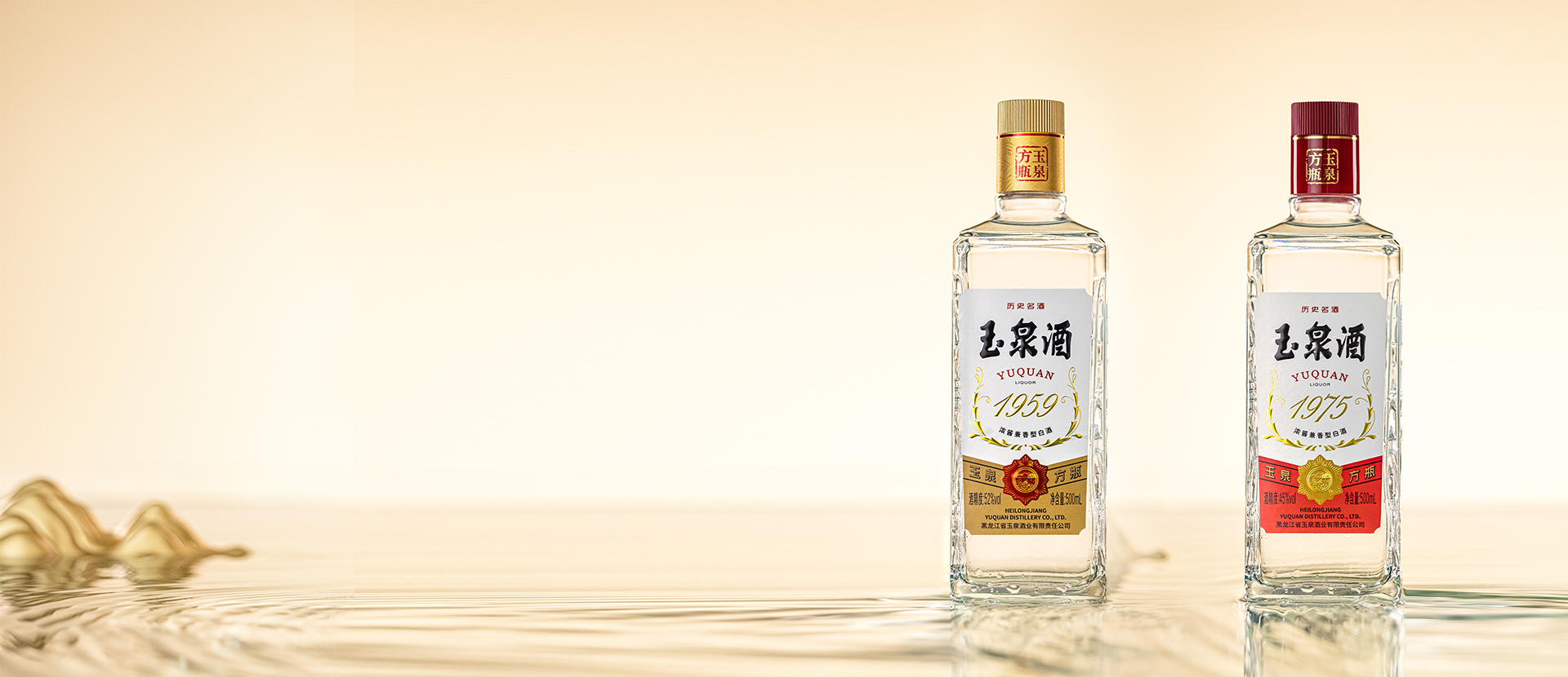 1959年由國家商業(yè)部投資、黑龍江省政府組織下,“黑龍江省玉泉酒廠”正式成立。1975年全國白酒泰斗周恒剛領導的全國白酒技術精英專家小組,首創(chuàng)兼香型玉泉方瓶,成為當時中國第五大白酒香型。